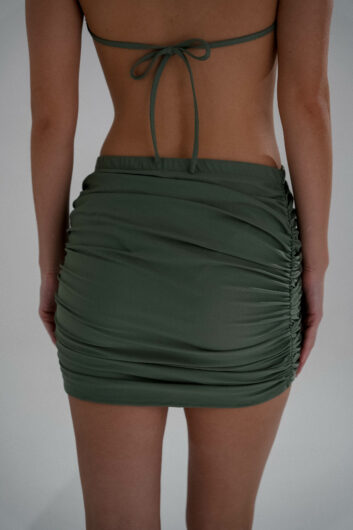 Юбка прекрасно сочетается со всеми моделями наших купальников и создает цельный образ. В ней вы также можете зайти в воду, не боясь, что она намокнет, так как юбка выполнена из того же быстросохнущего материала, что и наши купальники. За счет сборок можно регулировать длину юбки.