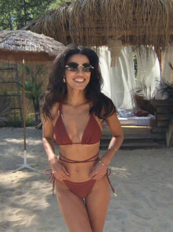 Купальник Эрис — наша классическая модель бикини. Лиф с тонкими бретелями для идеального загара. Доступен в оттенках: айвори, черный, коричневый, мерцающий розовый, Санторини